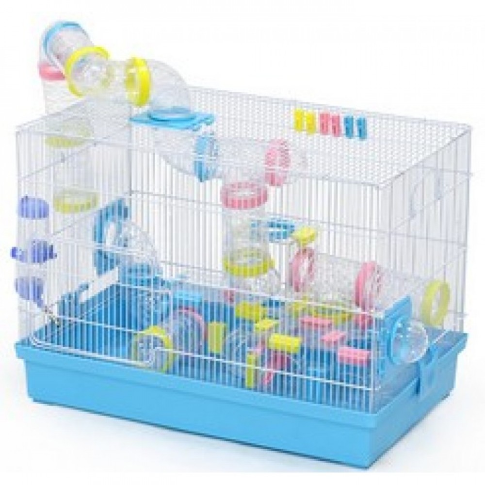 Материал прутьев - эмалированная сталь. Материал основы - пластик. Комплектация - поилка, тоннель
