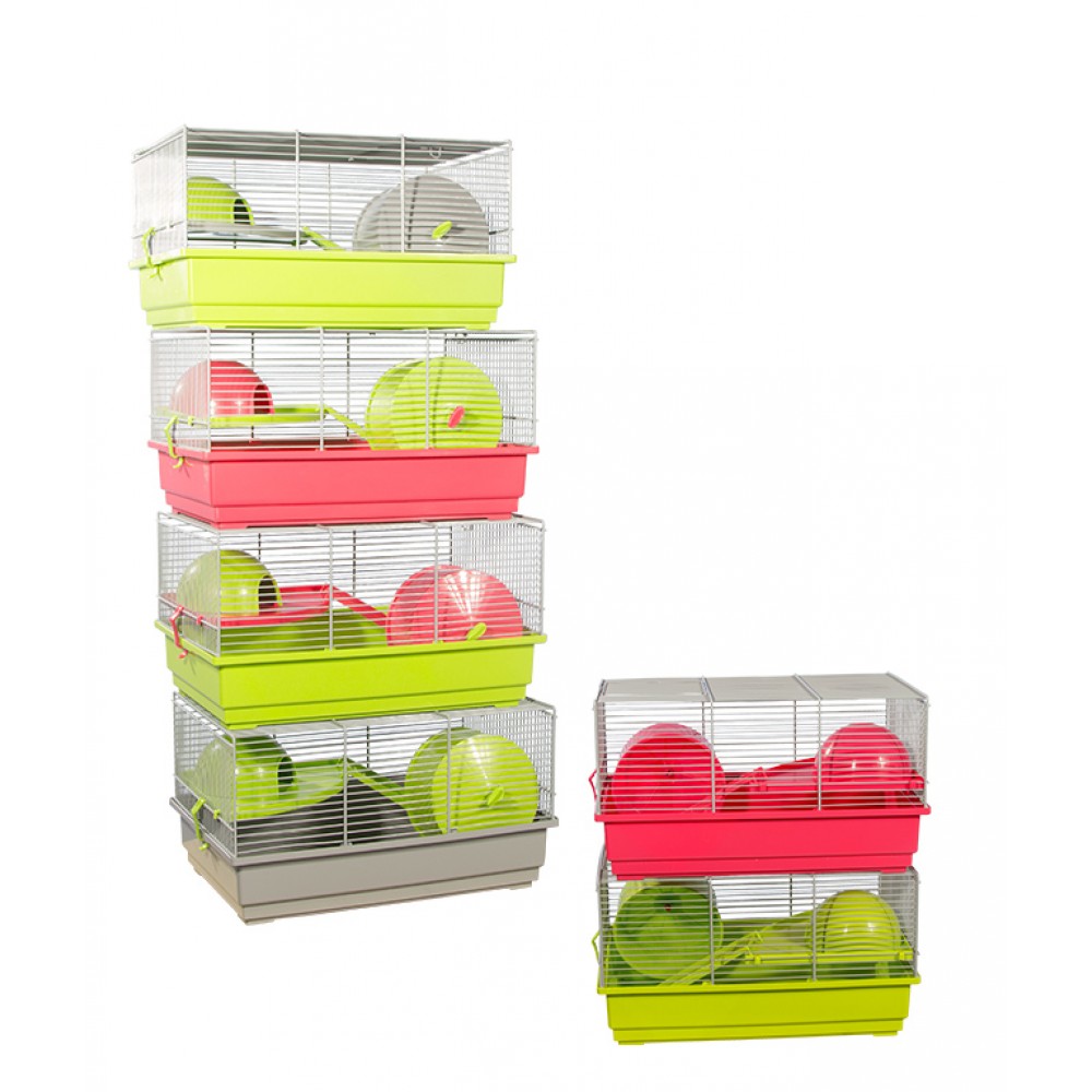 Клетка небольшого размера подходит для хомяков. Изготовлено в Испании, с использованием эпоксидной краски без свинца и пластика, полипропилена, не токсична. В комплекте колесо, домик и угловая полка.