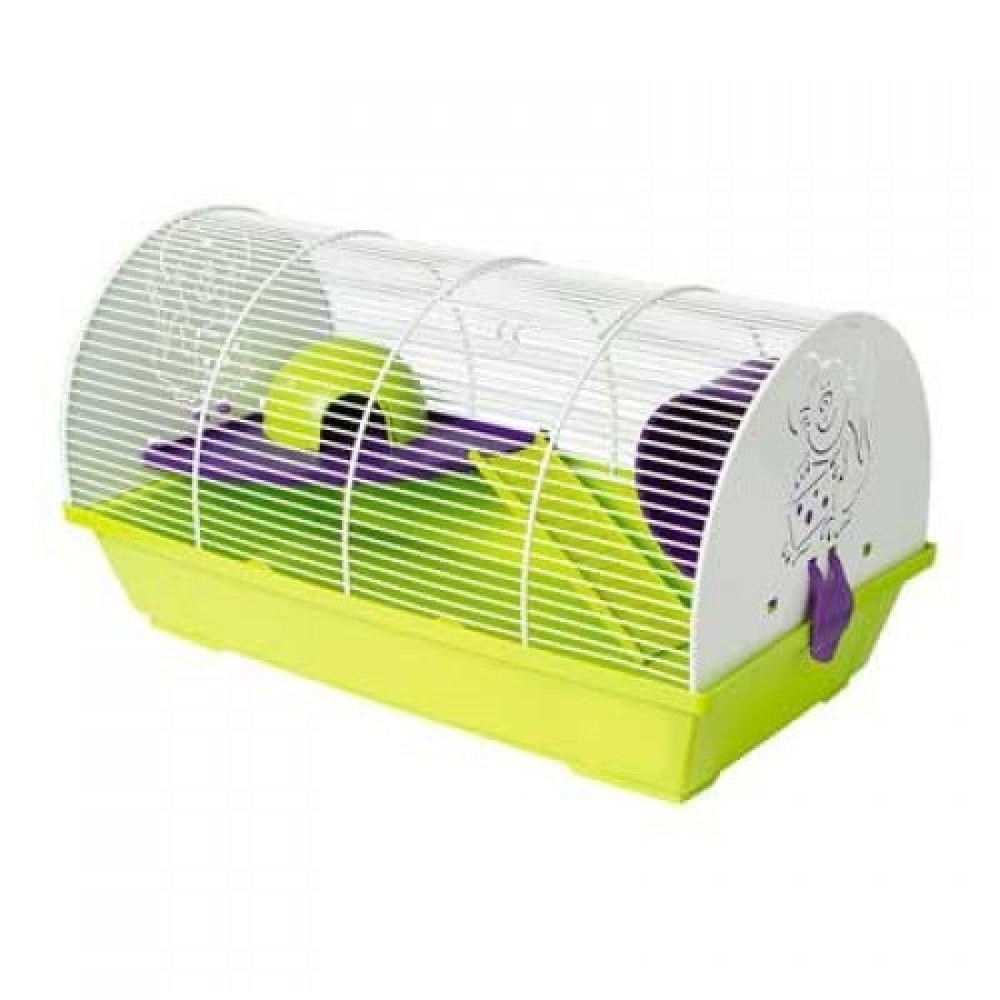 Клетка небольшого размера подходит для хомяков с декоративным рисунком по бокам. Изготовлено в Испании, с использованием эпоксидной краски без свинца и пластика, полипропилена, не токсична. В комплекте колесо, угловая полка, лесенка и домик.
