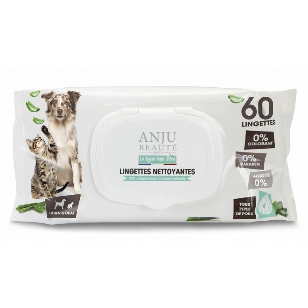 Мягкие очищающие салфетки Anju Beaute Cleaning wipes для лап, кожи, шерсти, глаз и ушей домашних животных с экстрактом алоэ – это универсальное средство для комфортного и нежного очищения. Упаковка 60 шт.