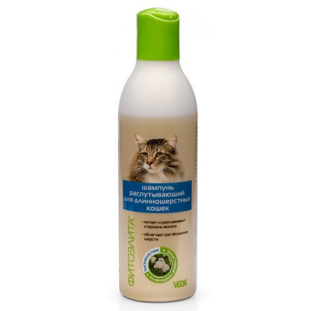 Фитоэлита шампунь от колтунов для пушистых кошек, 220 мл - гигиеническое моющее средство, в составе которого вещества и компоненты специально подобранные для кошек с пушистой шерстью.