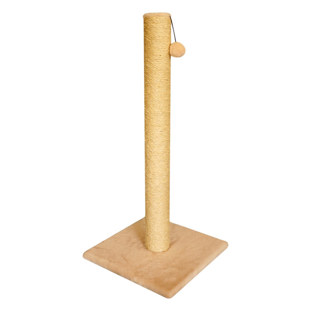 На вершине столбика закреплена игрушка-шарик. Основание имеет размер 42х42 см, а потому когтеточка будет устойчива под коготками даже самых активных котов.