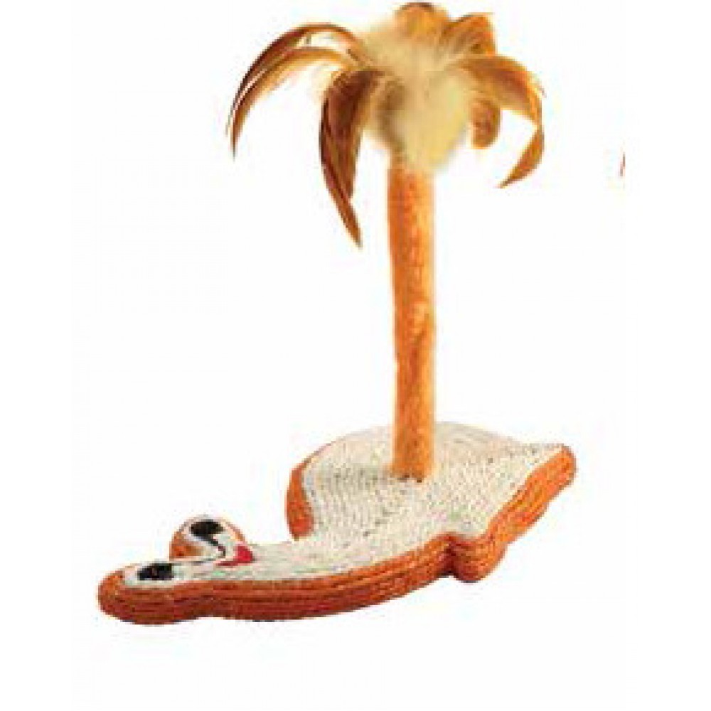 Когтеточка из сизаля в форме улитки в оранжевом цвете, с объемным перьевым хвостом и бубенцом на пружинке.