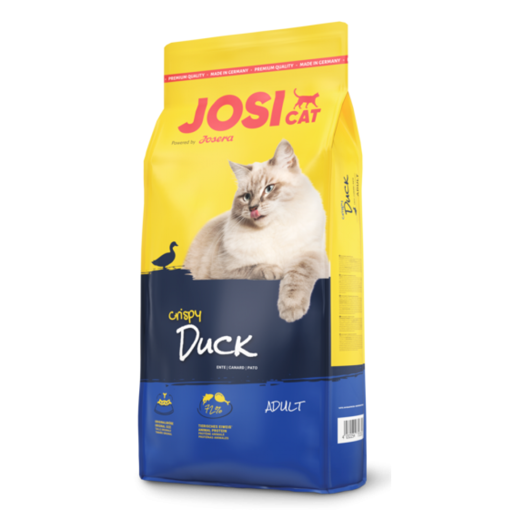 JosiCat Crispy Duck - сухой корм для взрослых кошек с аппетитным мясом утки. Содержит все необходимые для здоровья питательные вещества, подходит для кошек, как домашнего содержания, так и для ведущих активный образ жизни на свежем воздухе. Без искусственных красителей, ароматизаторов, усилителей вкуса и консервантов. Без сои, сахара и молочных продуктов.