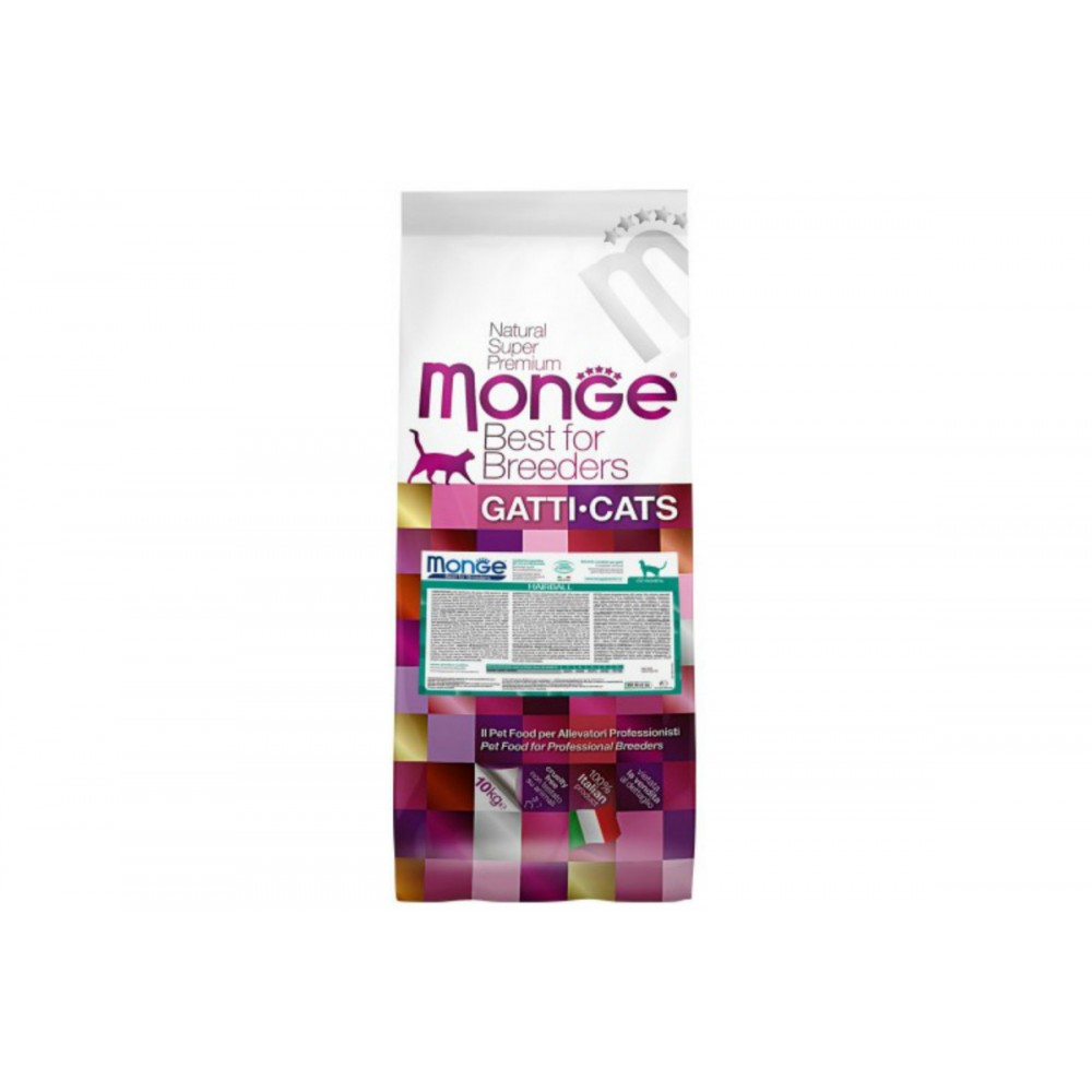 Monge Cat Hairball Daily Line - сухой корм для кошек, выведения комков шерсти из желудка. Сбалансированный рацион для взрослых домашних кошек, часто страдающих от скопления комков шерсти в желудке. Высокий уровень белка в составе корма и содержание в нем L-карнитина позволяют кошке долгие годы сохранять активность и хорошую физическую форму.