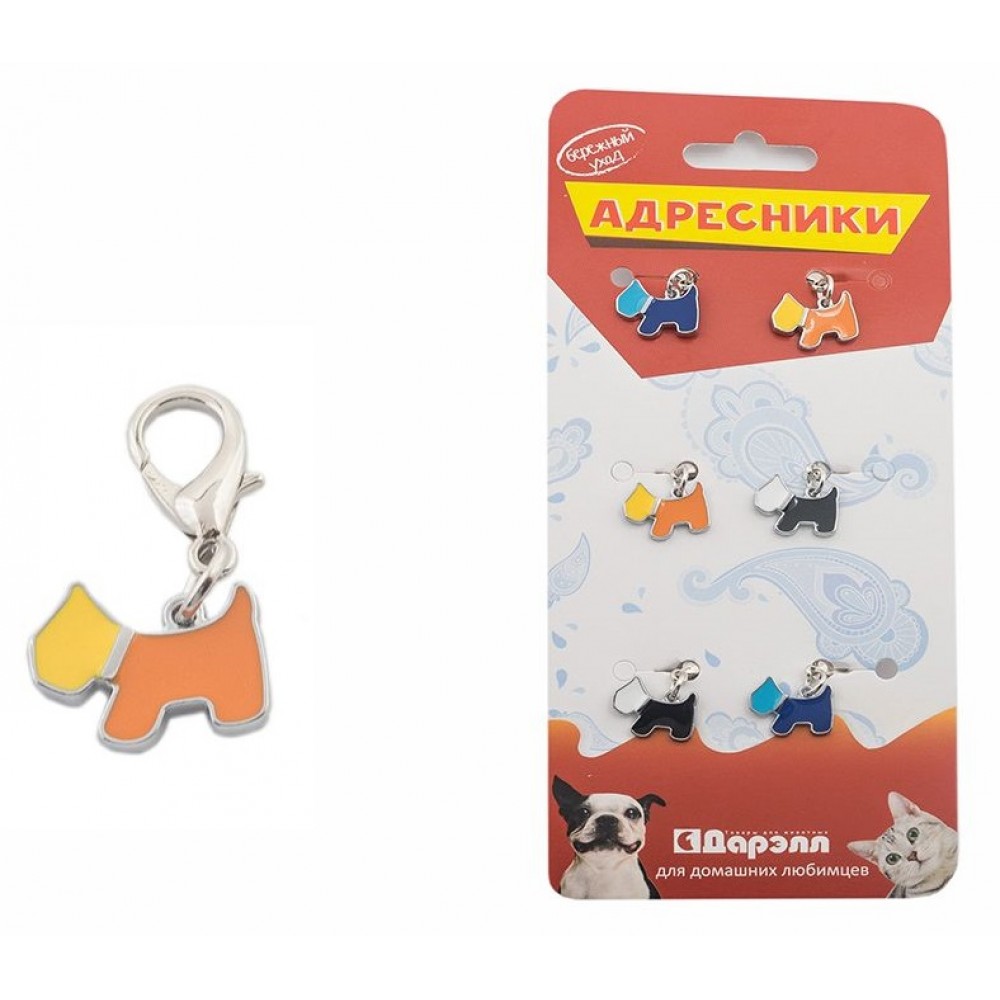 Адресник-украшение для закрепления на ошейнике, на обратной стороне возможно нанесение гравировки с информацией о животном и адресе, куда его вернуть в случае потери.