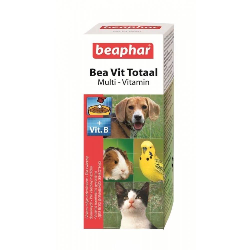 Beaphar Bea Vit Total - это кормовая добавка для всех домашних животных и птиц. Показана собакам, кошкам, грызунам, кроликам, хорькам и декоративным птицам для улучшения состояния кожи и придания блеска шерсти и оперению, укрепления нервной системы, снижения вероятности появления экзем и дерматитов, а также при недостатке витаминов в рационе.