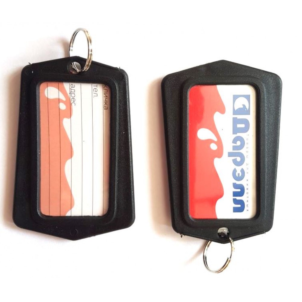 Брелок адресный на ошейник для собак, прямоугольный. Есть вкладыш для информации о животном / телефона владельца и кольцо, чтобы подвесить на ошейник. Изготовлен из прочного пластика, 4,2*6 см.