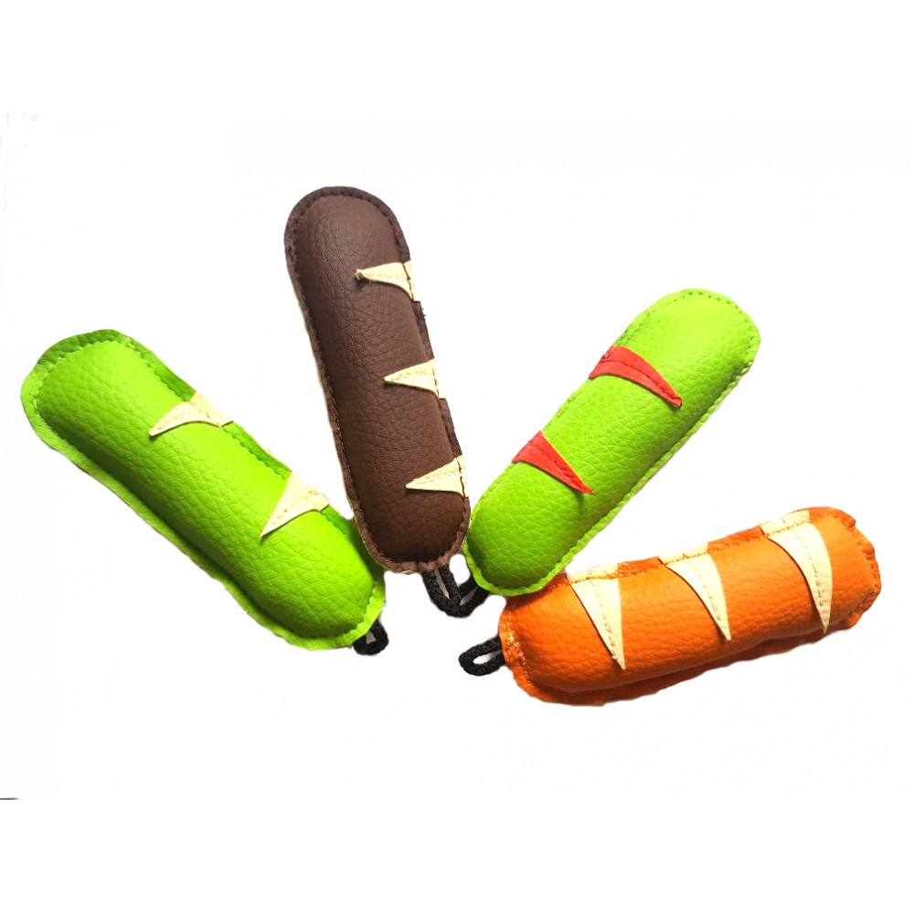 Игрушки серии 'Дарэлл-Конфетти' - это недорогие разноцветные жизнерадостные игрушки-аппорты для кошек и собак, отшитые из прочной эко-кожи. На каждой игрушке имеется петелька из шнурка, которая придётся как нельзя кстати при желании привязать к ней какую-нибудь верёвочку или нитку. Игрушка 'СОСИСКА' серии 'Конфетти' имеет длину 12 см, шьётся из эко-кожи двух цветов, плотно набита синтепухом.