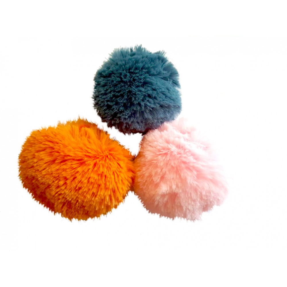 Мячик диаметром около 7 см, отшитый из меха. Простая, очень недорогая игрушка для кошки или другого зверька (хорька, маленькой собаки). Мячик туго набит синтепухом.