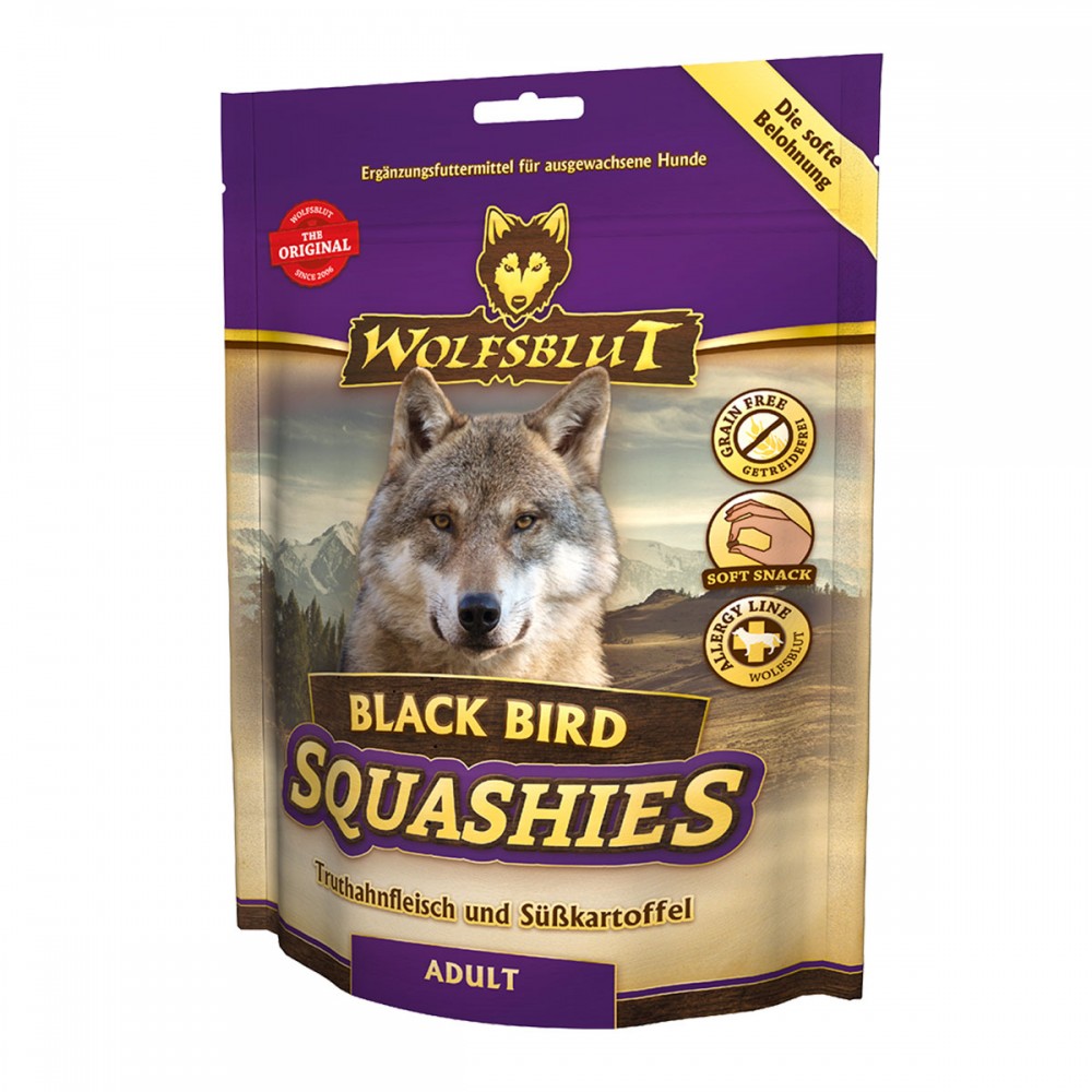 Wolfsblut Black Bird Adult SQUASHIES (Лакомство Черная птица для взрослых) - это мягкие закуски для собак - угощение и тренировочная закуска в практичной закрывающейся упаковке,которое обязательно оценит Ваш питомец.