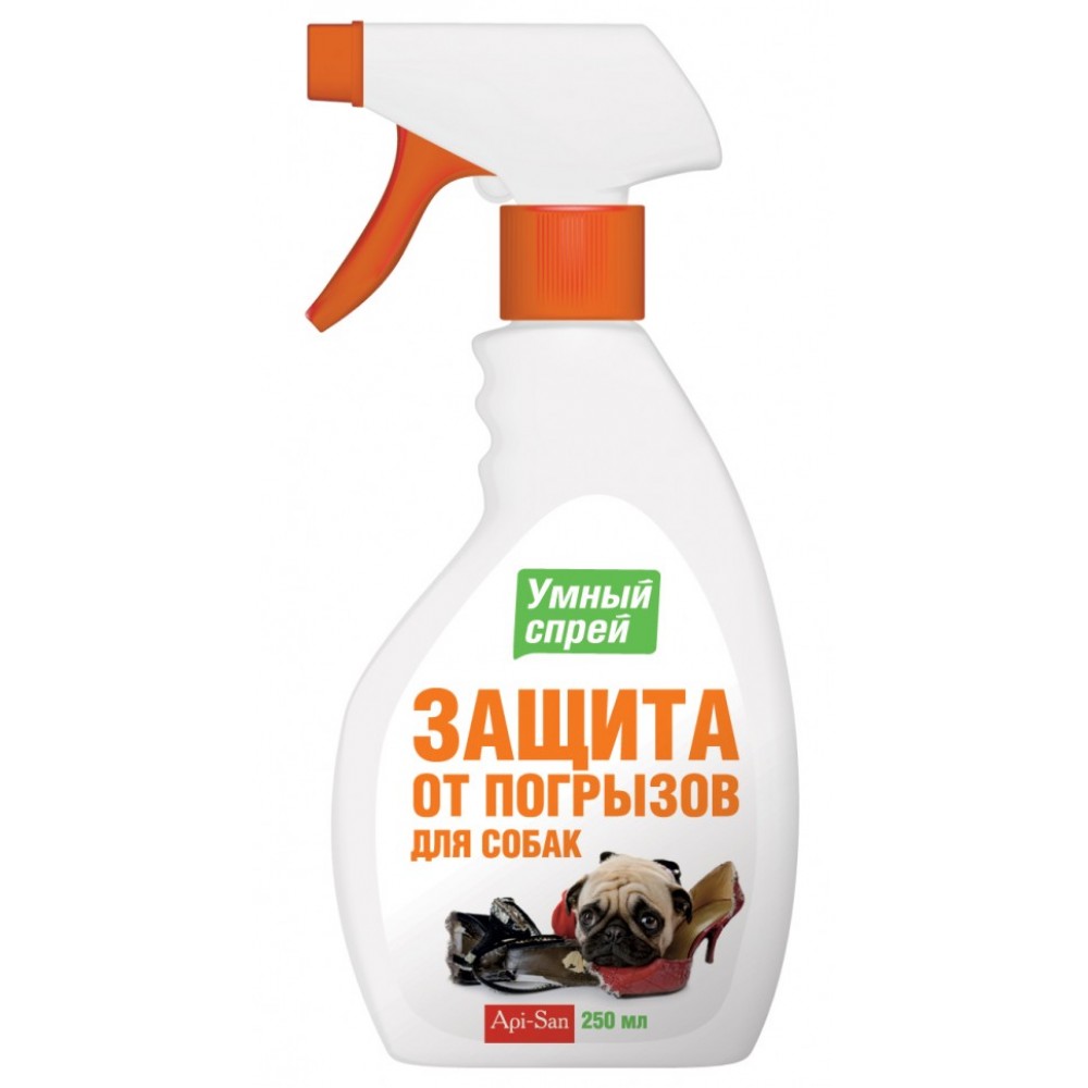Описание: Умный спрей Защита от погрызов для собак помогает отучить вашего питомца от порчи зубами и когтями предметов мебели, обуви и одежды, предметов домашнего обихода, обоев и проводов, комнатных растений, а также мечения мочой половых покрытий, обуви, предметов интерьера и др.