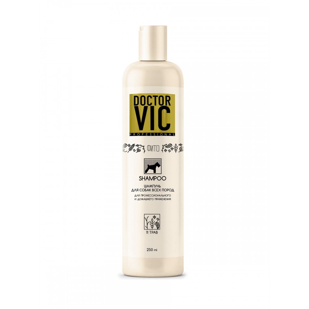 Шампунь Doctor VIC PROFESSIONAL «11 трав» для собак бережно и эффективно ухаживает за шерстью любого типа, придавая шелковистую мягкость и сияющий блеск, поддерживает естественный уровень увлажненности кожно-волосяного покрова, обладает кондиционирующими свойствами, надолго обеспечивает защиту от вредных факторов окружающей среды. Богатейшая формула экстрактов трав питает, увлажняет, тонизирует, снимает зуд и раздражение, обладает антибактериальными свойствами, устраняет перхоть и себорею, способствует естественной регенерации клеток. Растительные компоненты кокосового масла обеспечивают глубокое очищение кожно-волосяного покрова.