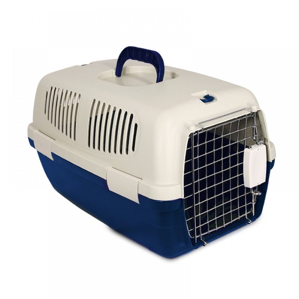 Переноска выполнена из прочного пластика. Оснащена металлической дверцей надежно закрывающейся, вентиляционными отверстиями, застежками и удобной ручкой для транспортировки.