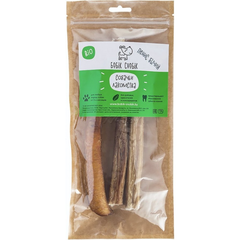 Лакомства бычий корень резаный (Бобик-Снобик) - одно из самых любимых лакомств всех собак и щенков.
