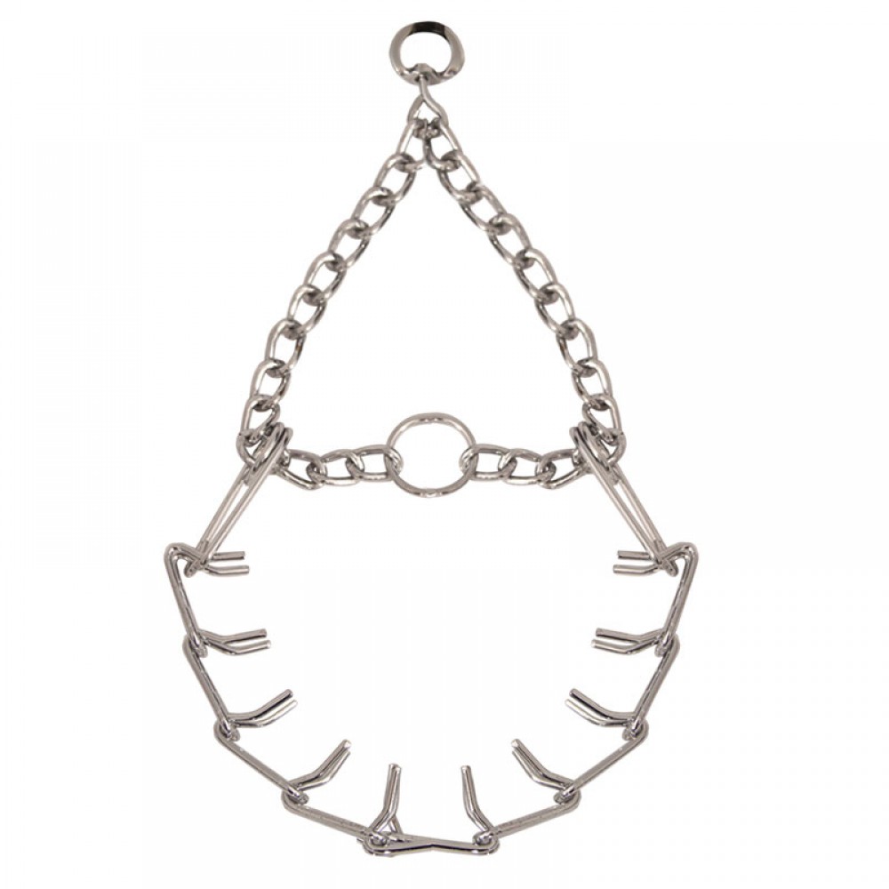 Строгий стальной ошейник-удавка с шипами - функциональный аксессуар для собак средних и крупных пород и эффективная мера воздействия при длительных прогулках и интенсивной дрессировке. Расположенные внутри ошейника шипы позволяют координировать все действия собаки и держать ее под строгим контролем. Цвет: хром.