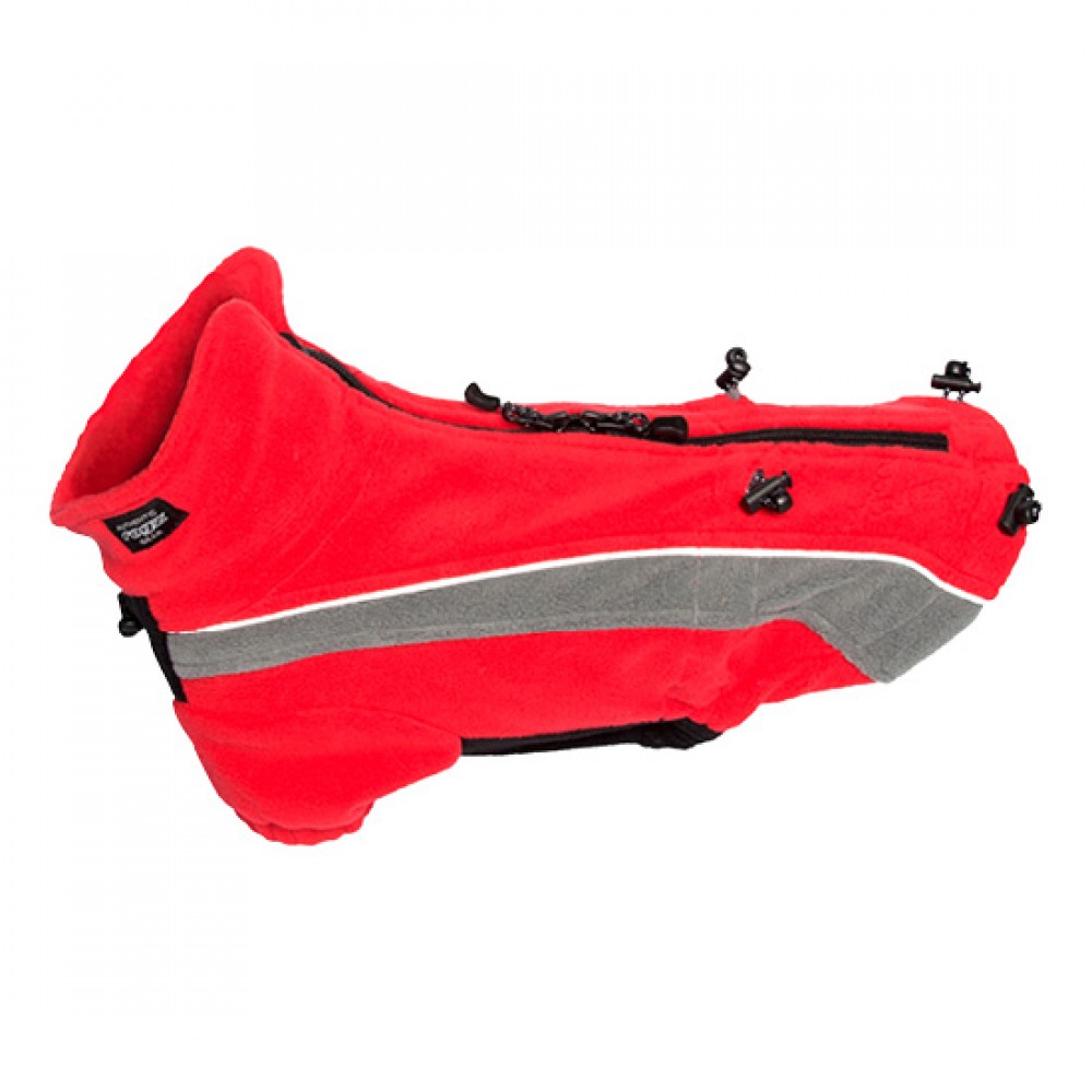 Попона для прогулок в холодное время года. Благодаря эластичным вставкам не стесняет движений собаки. Молния оснащена защитой от попадания шерсти. В производстве используется качественная ткань, на которой не образуются катышки. Допускается машинная и ручная стирка.