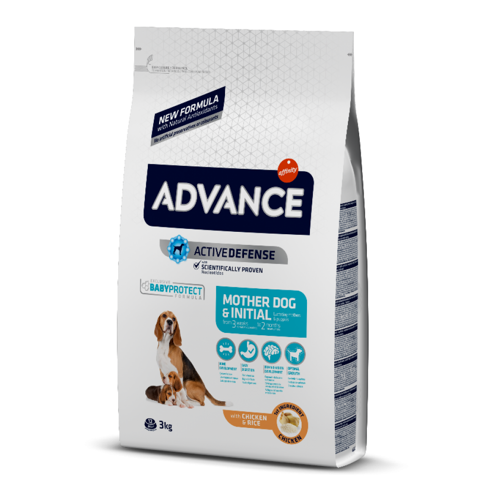 Корм Advance Mother Dog&Initial - высококачественный сбалансированный полнорационный сухой корм для щенков (в возрасте от 3-х недель до 2-х месяцев), а также для беременных и кормящих собак.