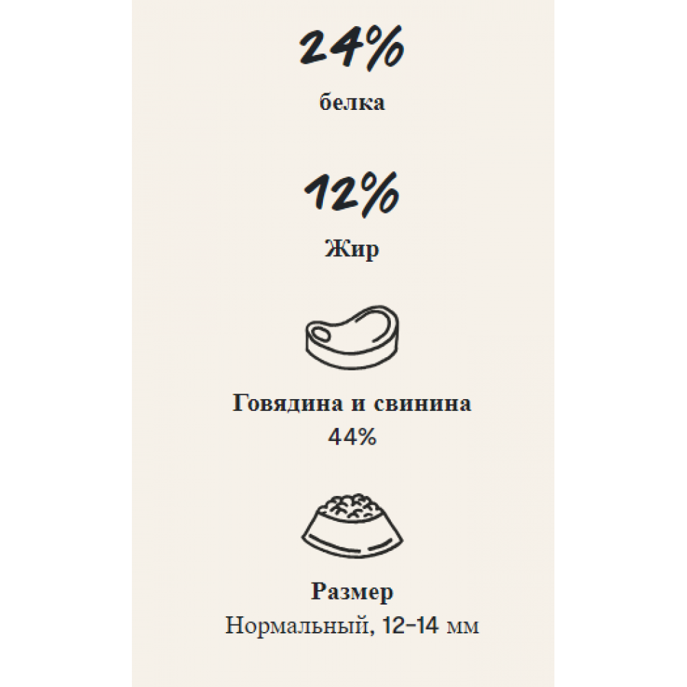Хорошо сбалансированный, питательный и с высококачественным белком для поддержки мышц, структуры костей и хорошего здоровья.