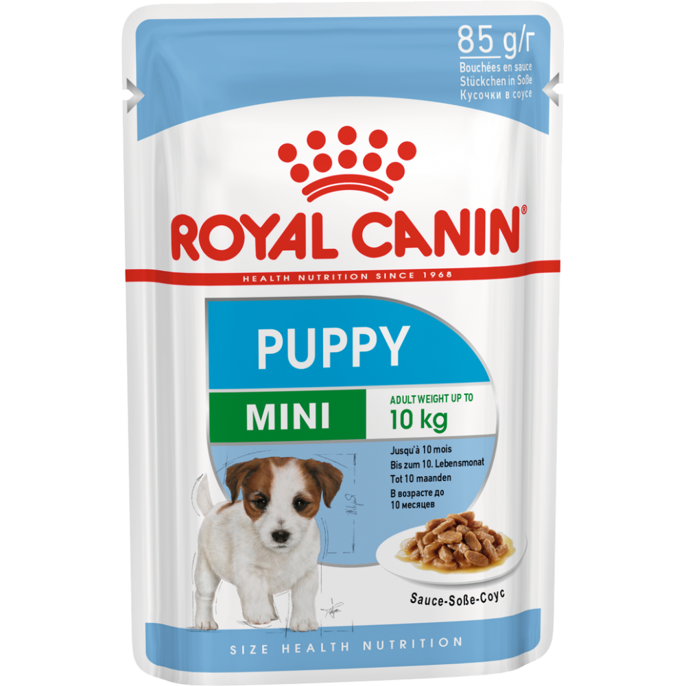 Royal Canin Mini Puppy Pouche - консервы для щенков. Упаковка 85 г. Консервы для щенков собак мелких размеров (вес взрослой собаки от 4 до 10 кг) в возрасте с 2 до 10 месяцев