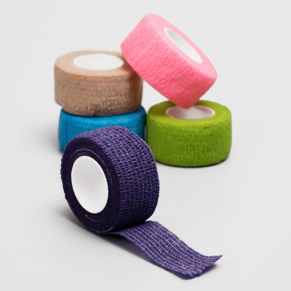 Эластичный бинт самоклеящейся. Разные цвета. Размер: ширина 2,5 см, длина 4,5 м.