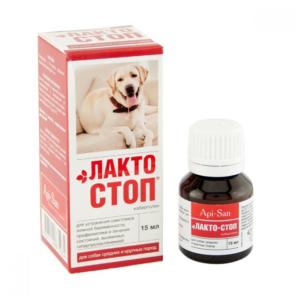 Apicenna Лактостоп - раствор для орального применения, лечащий ложную щенность (беременность) и подавляющий лактацию по медицинским показаниям у собак и кошек. Объём упаковки - 7 мл и 15 мл.