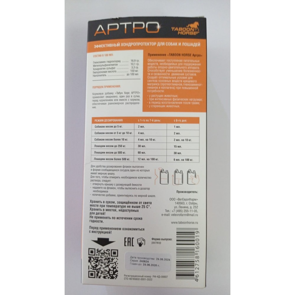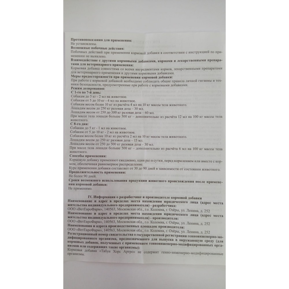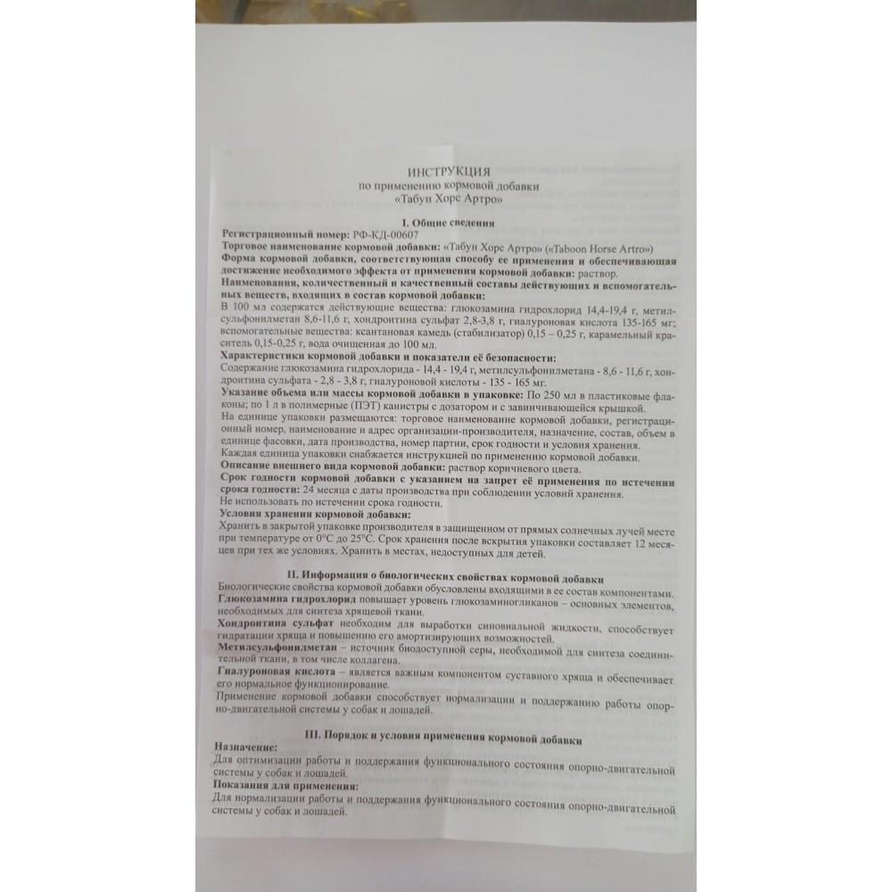 Табун Хорс Артро является официально зарегистрированной кормовой добавкой. Регистрационный номер: РФ-КД-00607