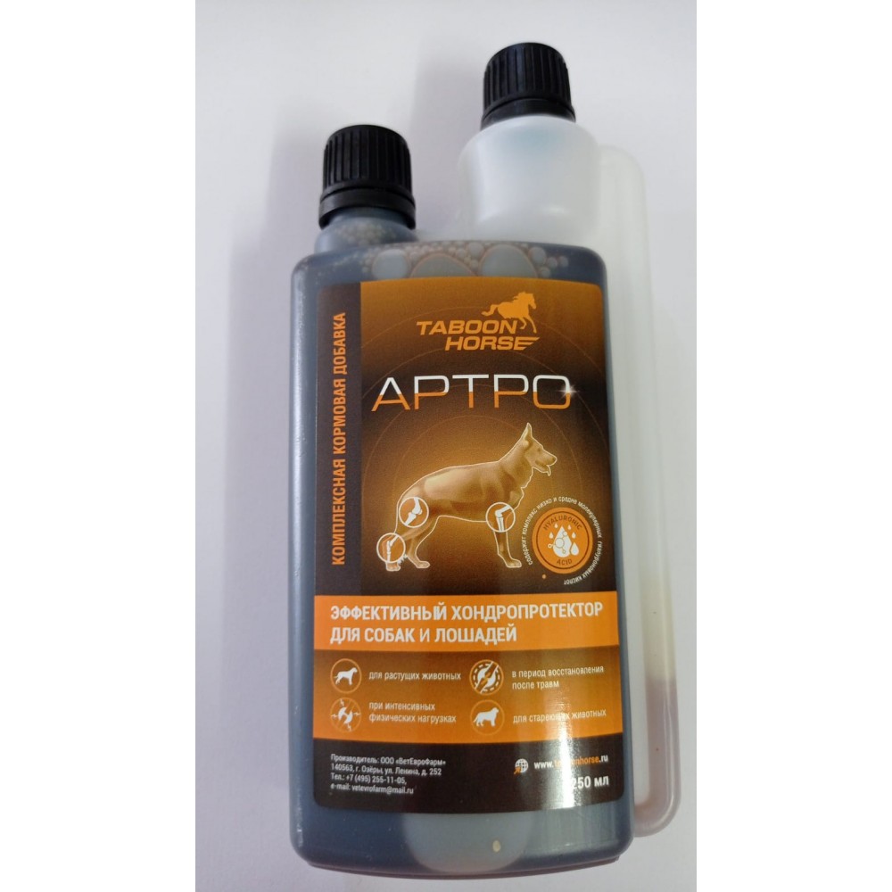 Табун Хорс Артро - кормовая добавка, хондропротектор для лошадей и собак. Обеспечивает поступление питательных веществ, необходимых для поддержания работы опорно-двигательного аппарата. Биологические свойства кормовой добавки обусловлены входящими в ее состав компонентами. Глюкозамина гидрохлорид повышает уровень глюкозаминогликанов в тканях суставов, которые являются «строительными блоками» для восстановления ткани хряща, обеспечивают его прочность и уровень гиалуроната - основного компонента суставной синовиальной жидкости, оказывая противовоспалительное действие.