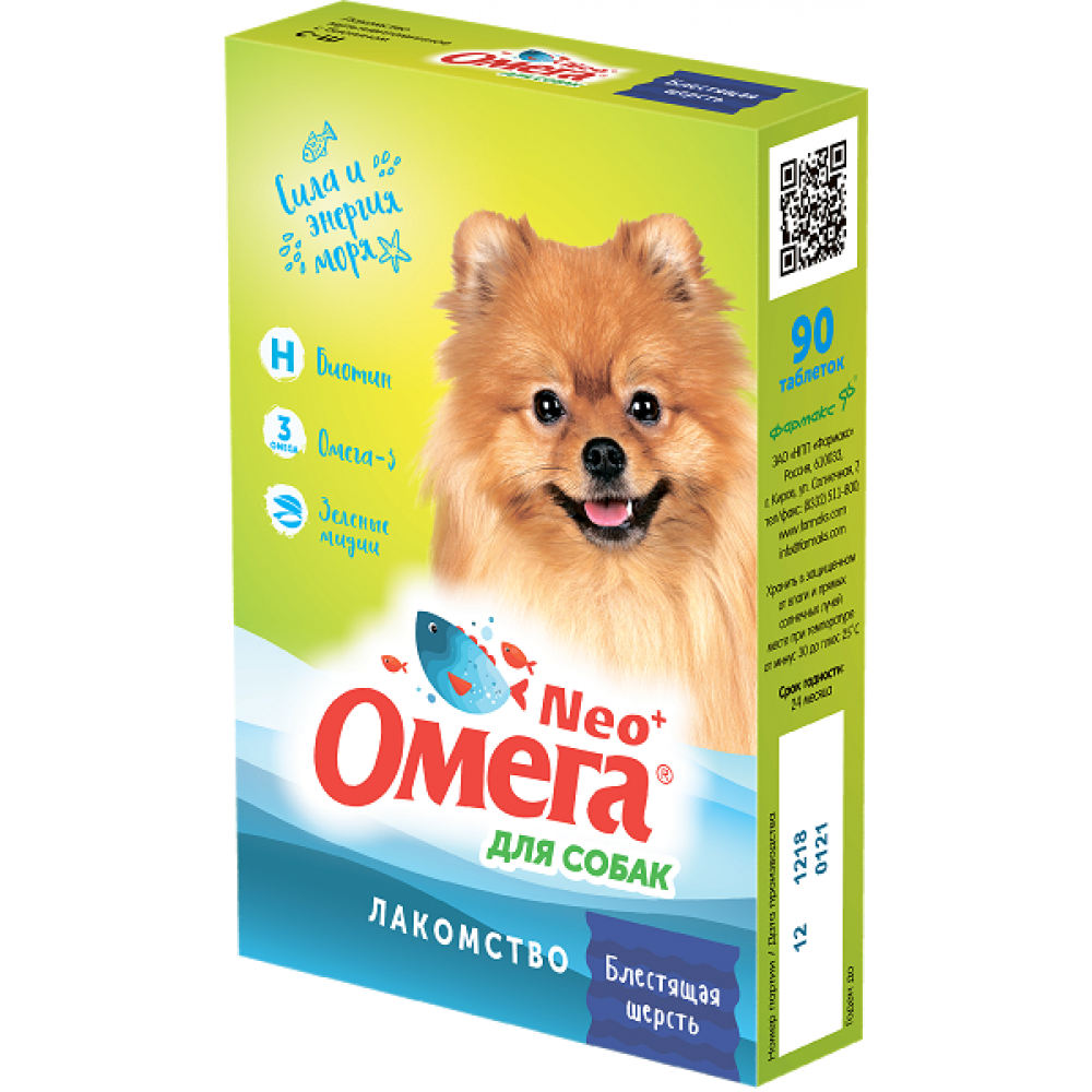Фармакс Омега Neo - это мультивитаминное лакомство для собак с биотином.